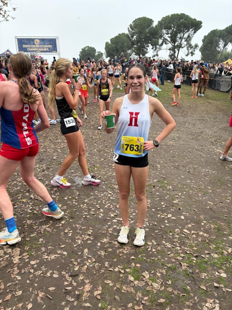 Ally Romersa’s CIF State Championship meet was the cap to the season. Finishing with a personal best 20:07.9, her time for the day puts her 3rd on the Hillsdale All-Time list for the course in Clovis. A superb way to wrap up her inaugural high school cross country season.